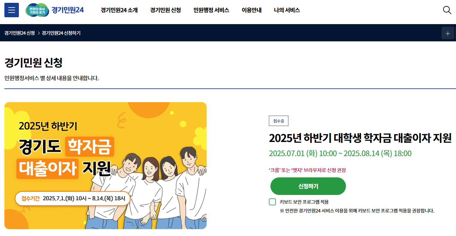 2025년 하반기 경기도 대학생 학자금 대출이자 지원 신청하러 가기!